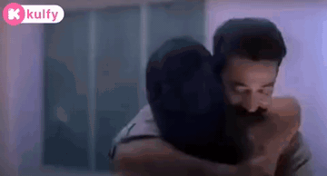Kamal Haasan and Kiran share a warm hug, a romantic moment from the film Anbe Sivam.