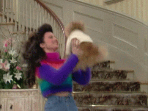 Fran Fine from The Nanny shares a sweet moment, affectionately hugging and kissing her adorable puppy.