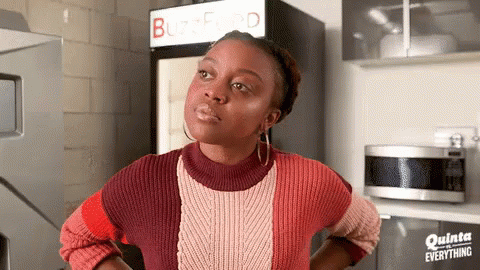 Quinta Brunson looks surprised and wide-eyed, reacting with a 'huh' expression in a moment from 'Quinta VS Everything'.
