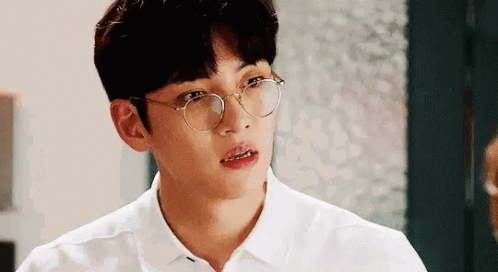 Ji Chang Wook, wearing glasses and a white shirt, makes a confused or disgusted face.