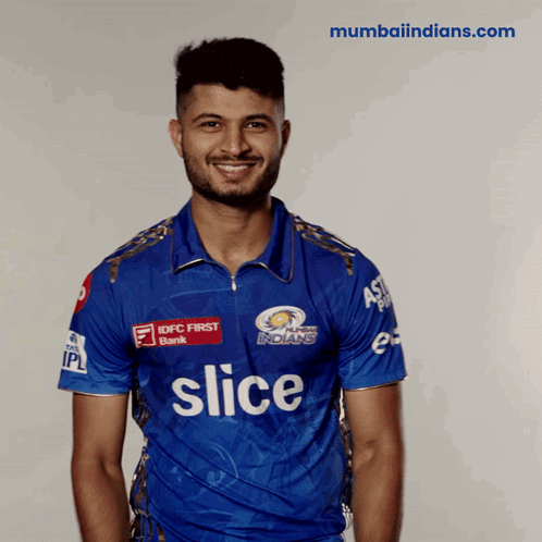 Mohd Arshad Khan of Mumbai Indians celebrates a victory with a joyful fist pump.
