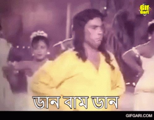 Humayun Faridi dances energetically in a yellow shirt to 'Jan Ram Jan' from 'Tel Gele Furaiya'.