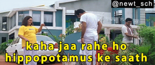 Paresh Rawal and Radheysham Tiwari in a funny scene from Hungama, asking 'Where are you going with a hippopotamus?'