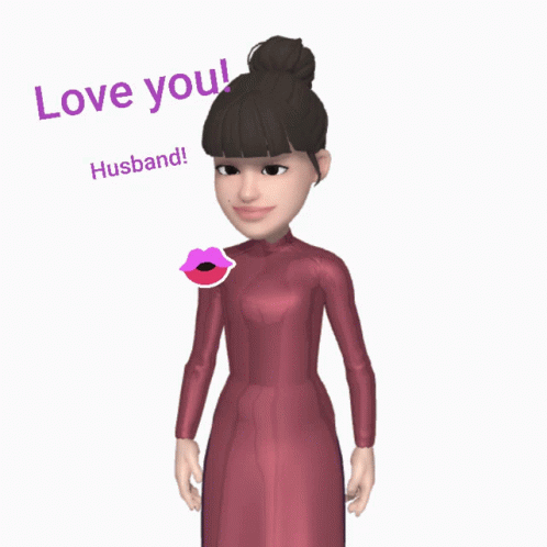 An animated character expresses love with a 'Love you, Husband!' message and a heart gesture.