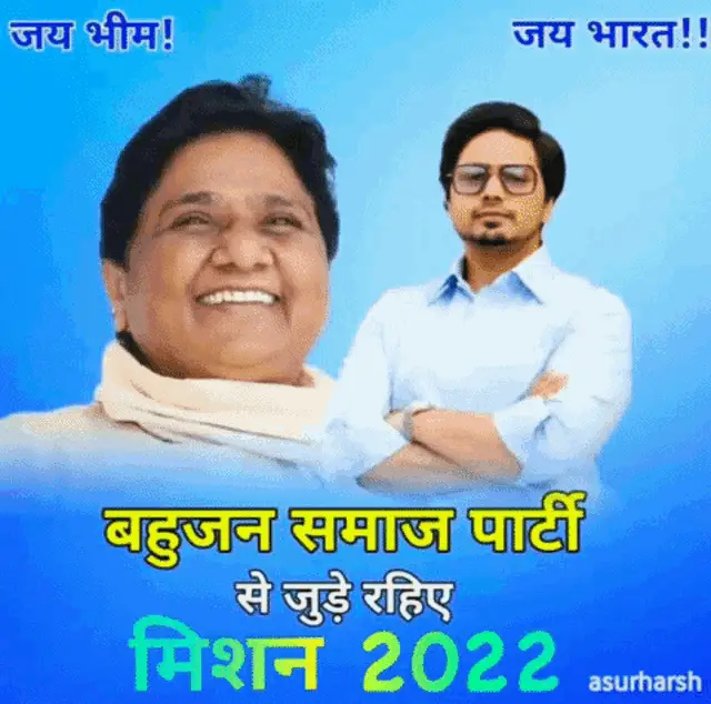 A political poster featuring Mayawati (Behan Ji) and the Bahujan Samaj Party (BSP) with a slogan by Harshvardhan Asur.