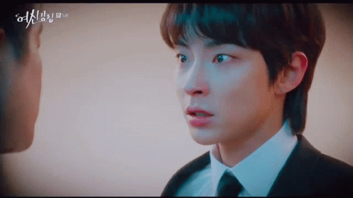 Hwang In Yeop as Han Seojun in True Beauty, looking surprised and intense in a suit and tie.