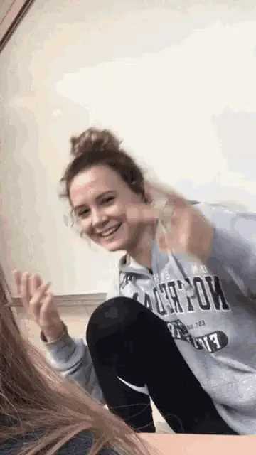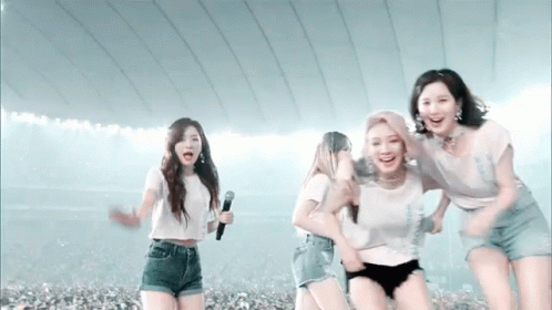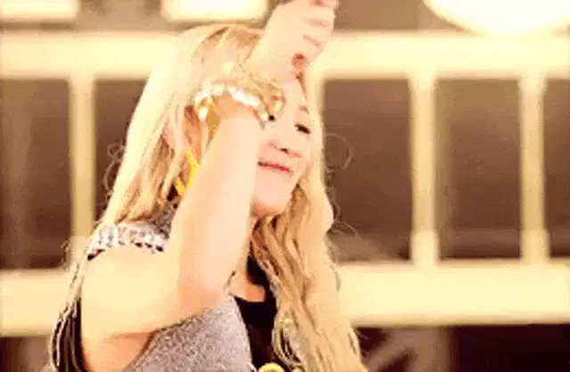 Hyoyeon playfully blows a kiss to the audience while performing on stage with her group, smiling brightly.
