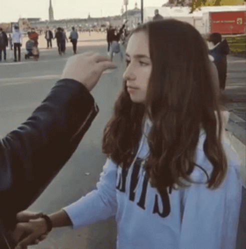 A girl appears to be hypnotized, rolling her eyes back before leaning into a comforting hug with a man.