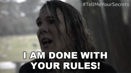 Lily Rabe as Emma, frustrated and defiant, declares 'I am done with your rules!' in a dramatic scene.