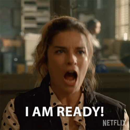 Annie Murphy looks determined and declares "I am ready!" in a Netflix ad for Murderville.