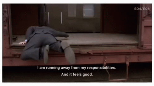 Michael Scott from The Office humorously declares he's running away from his responsibilities, and it feels good.