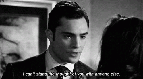Ed Westwick as Chuck Bass in Gossip Girl, expressing intense jealousy with the line 'I can't stand the thought of you with anyone else.'