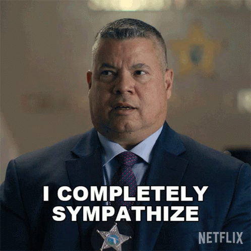 Corporal Garcia, wearing a sheriff's badge, states 'I completely sympathize' in a Netflix production.