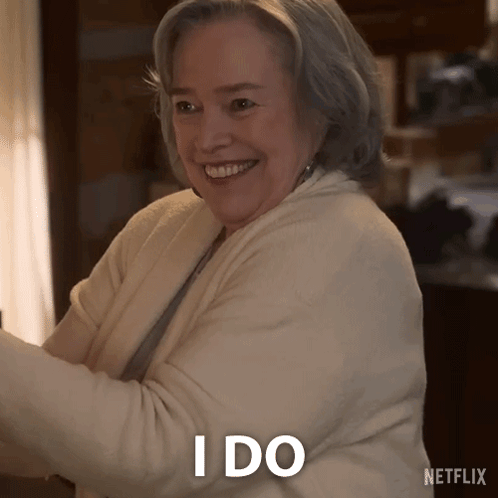 Leila Ford joyfully smiles and says 'I Do' in a heartwarming moment from a Netflix advertisement.