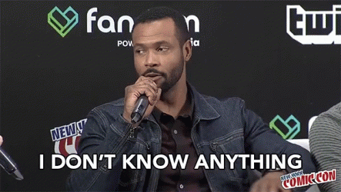 Isaiah Mustafa humorously states 'I don't know anything' while speaking into a microphone at New York Comic Con.