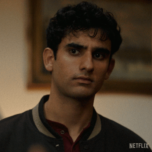 Zain Iqbal as Ravi Singh makes a puzzled 'I don't know' expression, seen in a close-up from the Netflix series.