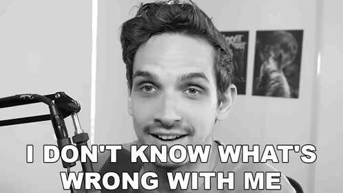 Nik Popovic, in a black and white close-up, expresses a feeling of uncertainty with the caption 'I don't know what's wrong with me'.