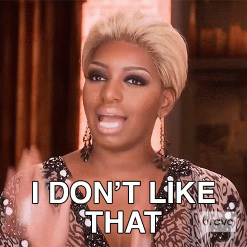 Nene Leakes from Real Housewives of Atlanta expresses disapproval, saying 'I don't like that' with hands raised.