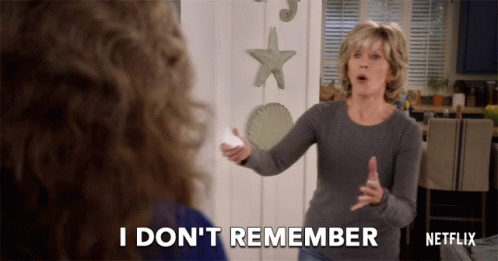 Jane Fonda as Grace says 'I don't remember' in a scene from Grace and Frankie, a Netflix series.