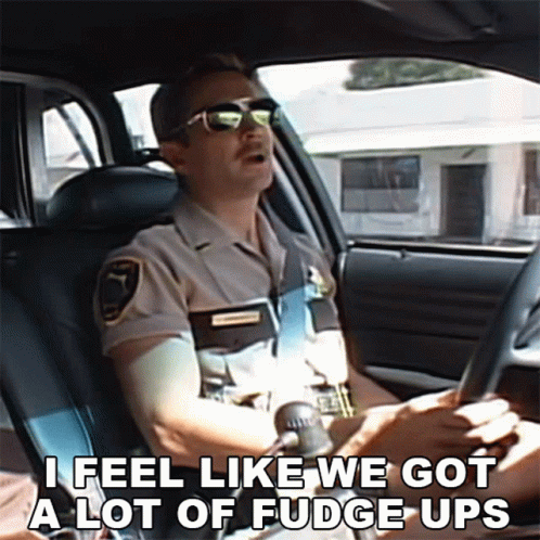 Lieutenant Jim Dangle, played by Thomas Lennon, driving and stating, "I feel like we got a lot of fudge ups."
