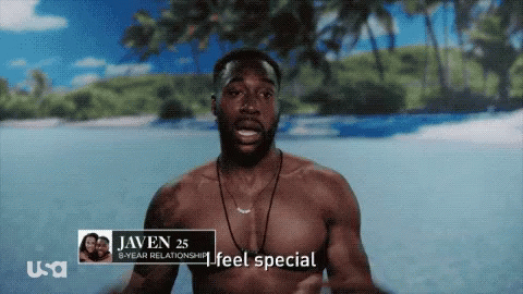 Javen from Temptation Island USA expresses feeling special and grateful in a tropical setting.
