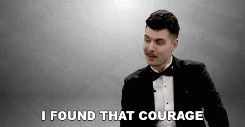 Benedict Townsend in a tuxedo declares 'I Found That Courage' against a gray background.