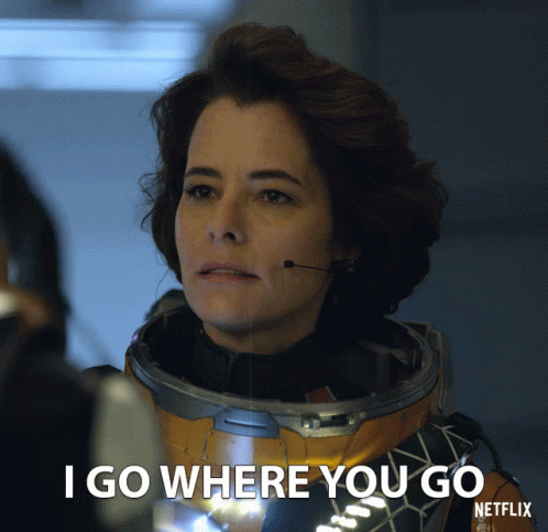 Parker Posey as Dr. Smith (June Harris) from Lost In Space, declaring 'I Go Where You Go' in her space suit.