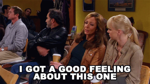Bonnie (Allison Janney) tells Christy (Anna Faris) she has a good feeling about something in a waiting room scene.