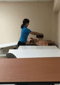 Woman practices head massage on a mannequin head, reflecting a frustrating experience as suggested by the original title.