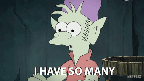 Elfo from Disenchantment exclaims 'I Have So Many Questions!' with an animated expression.