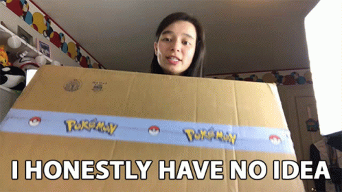 Hannah Fawcett holds a large cardboard box with 'Pokemon' tape, stating 'I HONESTLY HAVE NO IDEA'.