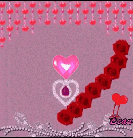 Animated 'I Love You Boulenin' message with a sparkling heart necklace, red roses, and hanging hearts.