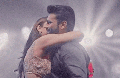 Rahul Vaidya and Disha Parmar (Dishul) share a loving embrace on stage, with 'I love you' text appearing.