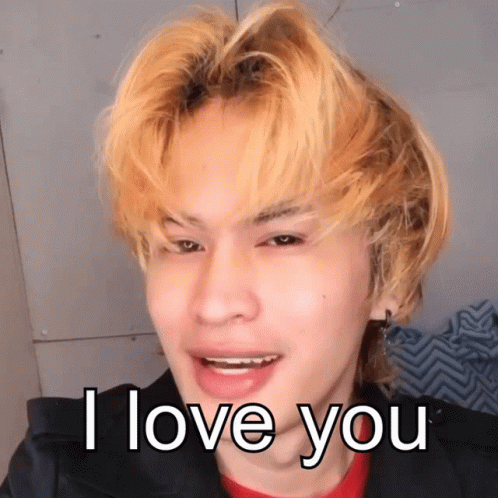 Mikoy Uy, a man with blonde hair, smiles and says 'I love you' to the camera.