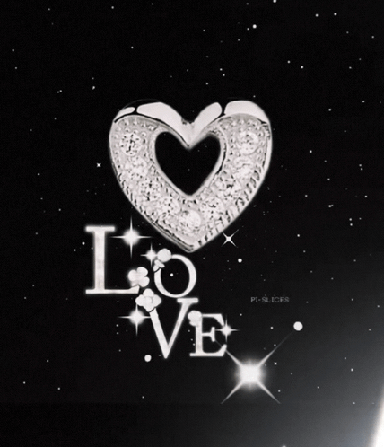 Animated sparkling heart with the word 'LOVE' on a starry black background, featuring bright light effects.