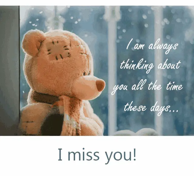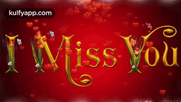 Animated "I Miss You" message in golden letters on a red background, adorned with hearts and butterflies.