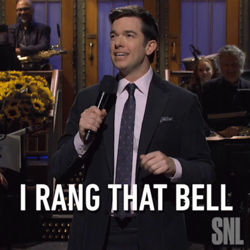Comedian John Mulaney on Saturday Night Live, emphatically declaring 'I Rang That Bell' during a performance.