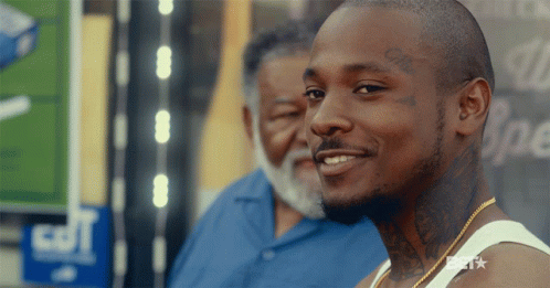An older man smiles and says "I See Yo Hustle" to a younger man, from the show Tales on BET.