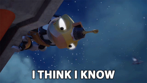 Click Clack from Dinotrux expresses 'I think I know' with a thoughtful expression.