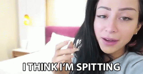 Amber Scholl checks her lips and humorously says, 'I think I'm spitting'.