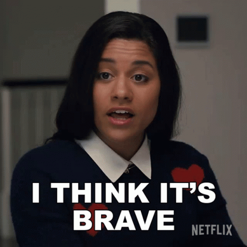 Alyssa Greene from Netflix's The Prom says 'I Think It's Brave' while wearing a sweater with hearts.