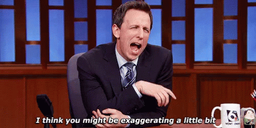 Seth Meyers delivers the line "I think you might be exaggerating a little bit" on Late Night.