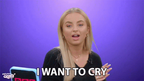 Cat Warner, looking emotional, says 'I want to cry' with a device in front of her.