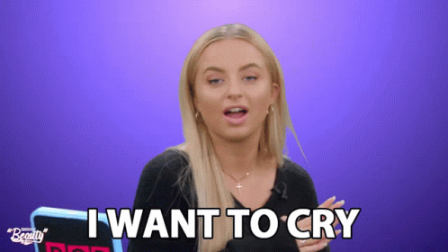 Cat Warner expresses emotion, stating 'I WANT TO CRY' in a Popbuzz Beauty segment.