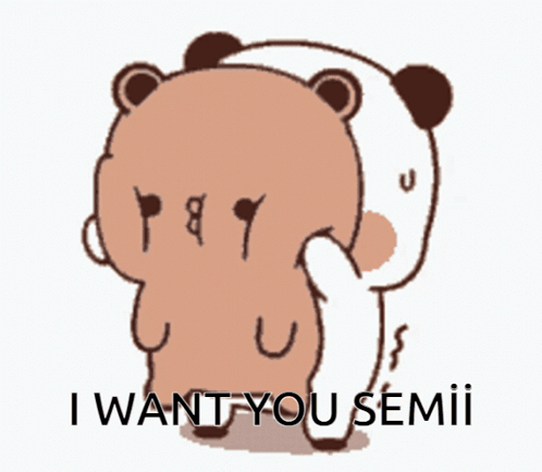 Cartoon featuring two bears, bubu and dudu, with the phrase 'I want you semii'.
