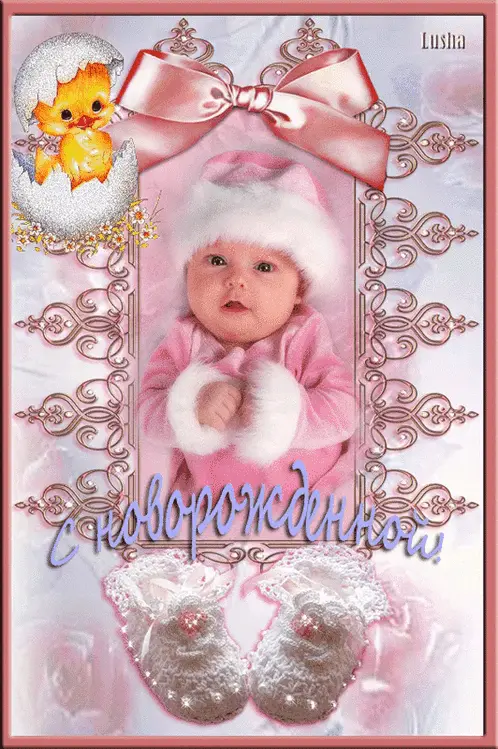 loading«С новорожденной!» красивая, мерцающая открытка