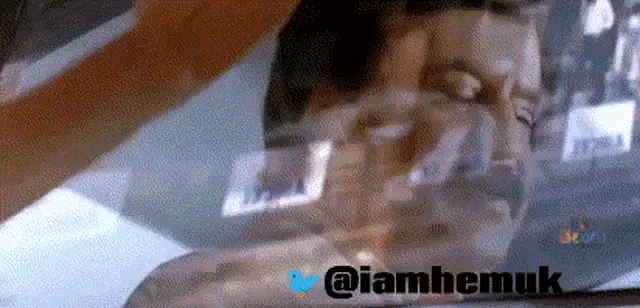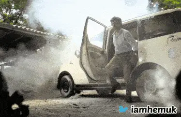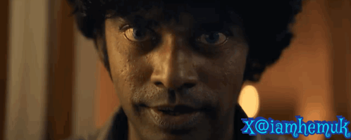 Iamhemuk's intense close-up with a subtle smile, featuring references to Leo Vijay and Thalapathy Vijay Leo.