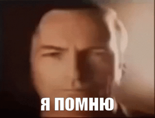 A man's intense close-up face with the Russian text 'I remember' overlaid.
