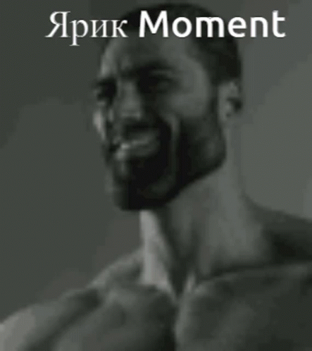 Yarik Moment meme featuring a smiling man with a beard in black and white.