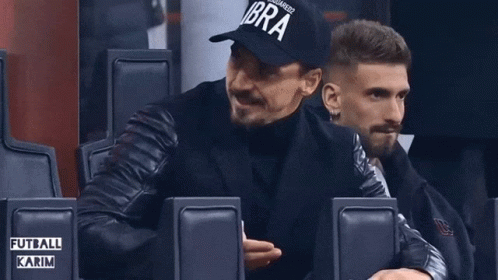 Zlatan Ibrahimovic smiling and gesturing while wearing a black 'IBRA' hat and a black jacket.